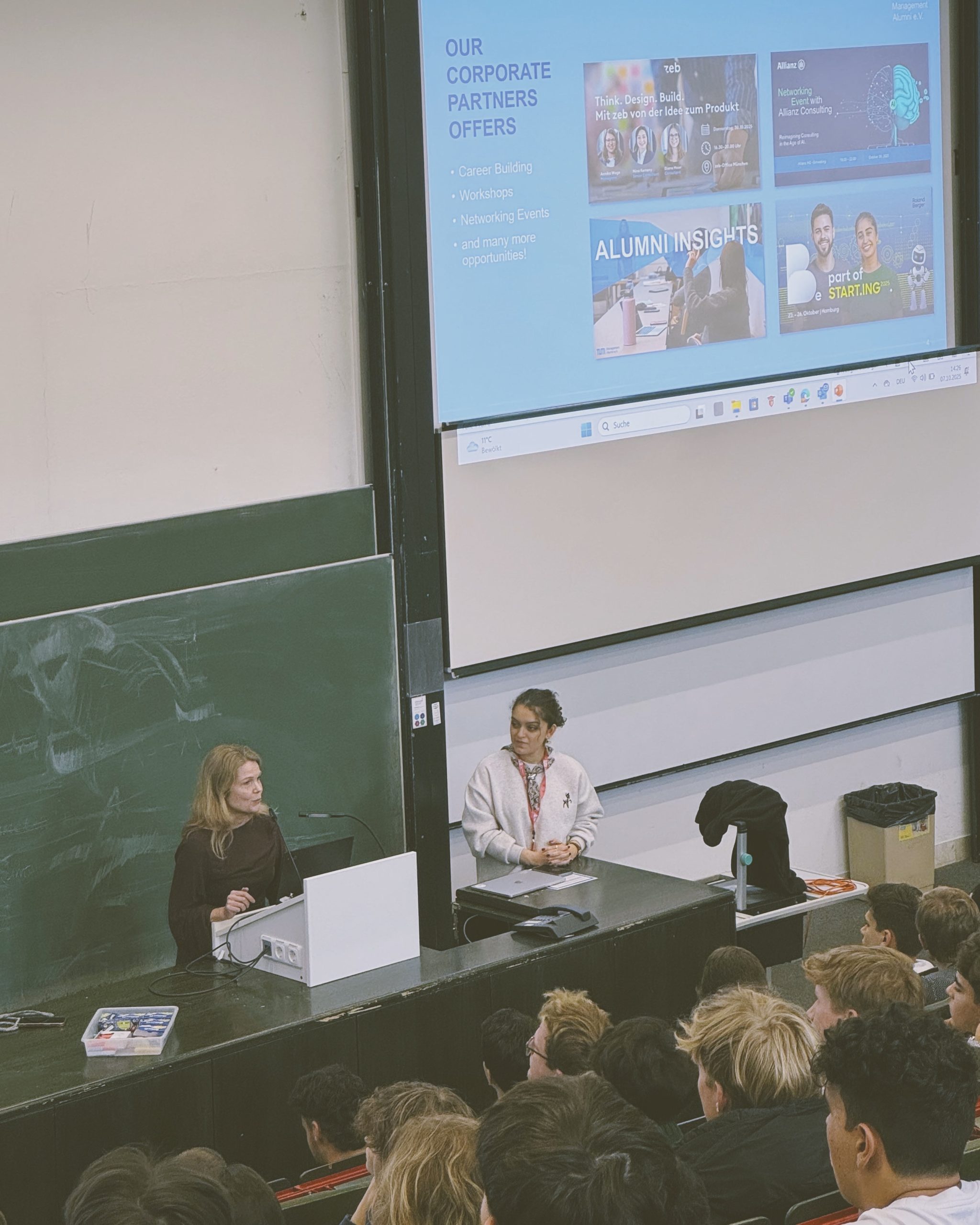 Ein weiterer Schwerpunkt war die Vorstellung von CareerOS, der Networkingplattform, die wir in Kooperation mit der TUM School of Management gelauncht haben. CareerOS ist die zentrale Plattform für Jobsuche und Unternehmenskontakte, mit direkten Kontakten zu Recruitern, exklusiven Stellen und Bewerbungstracking an einem Ort. Das Team zeigte Funktionen und Nutzung und wie Studierende schnell passende Firmenkontakte finden.